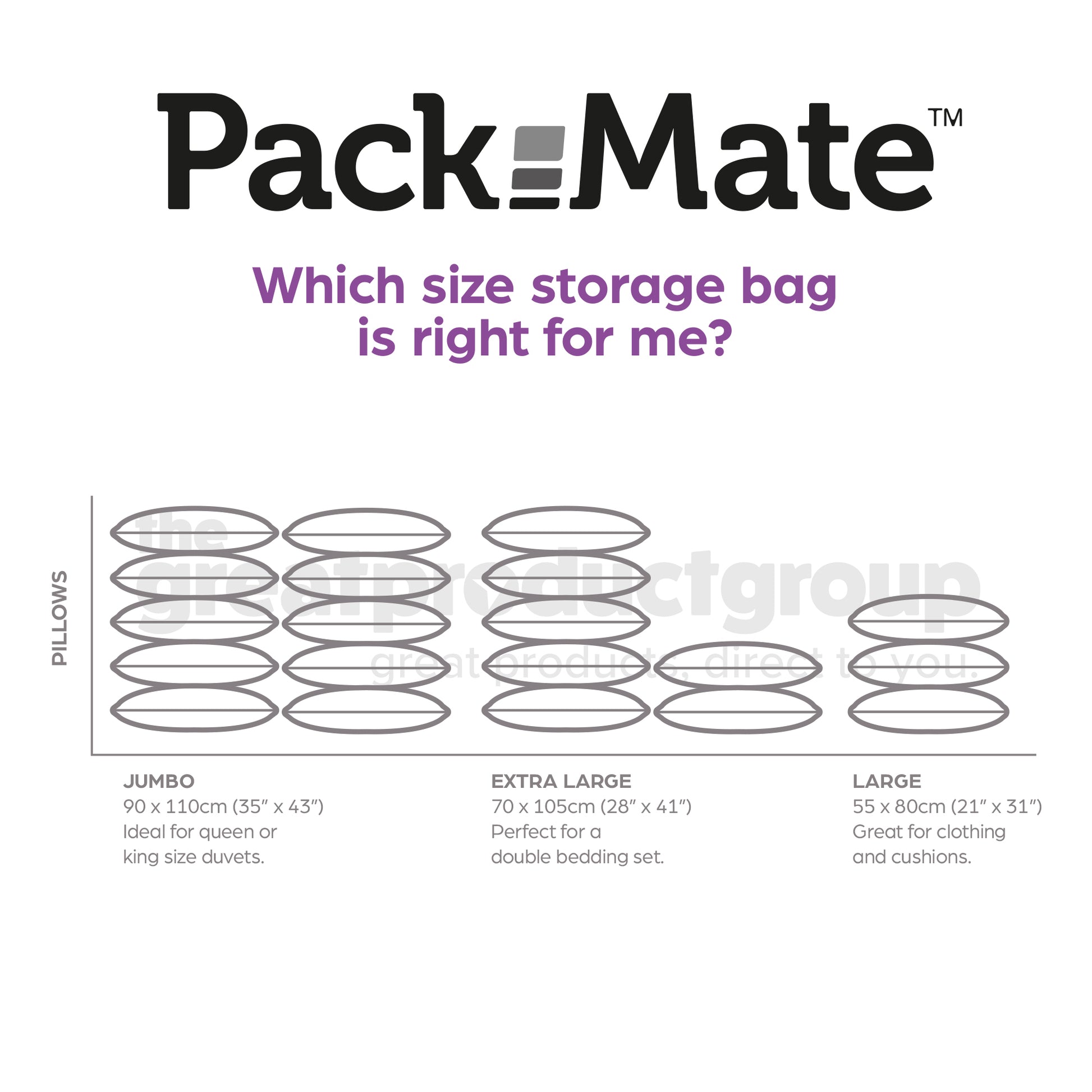 Packmate space saving bags also protect the contents from dirt, dust, damp and bugs.